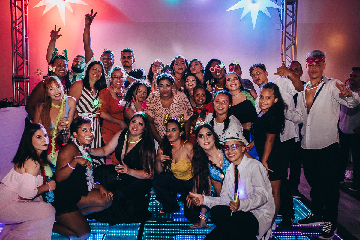 Festa animada, a turma curtindo de montão.